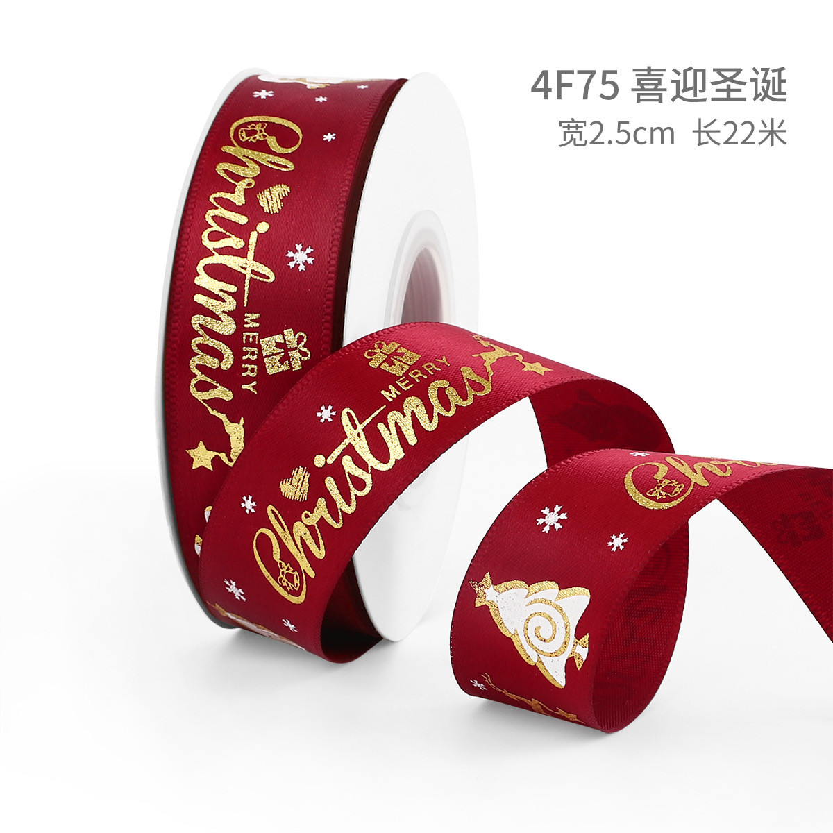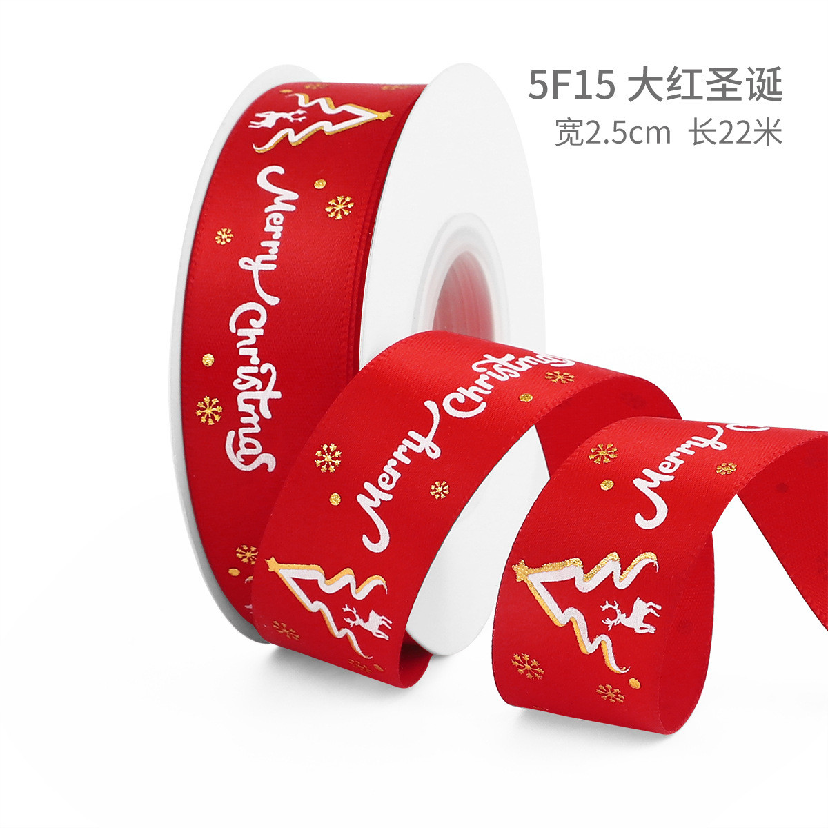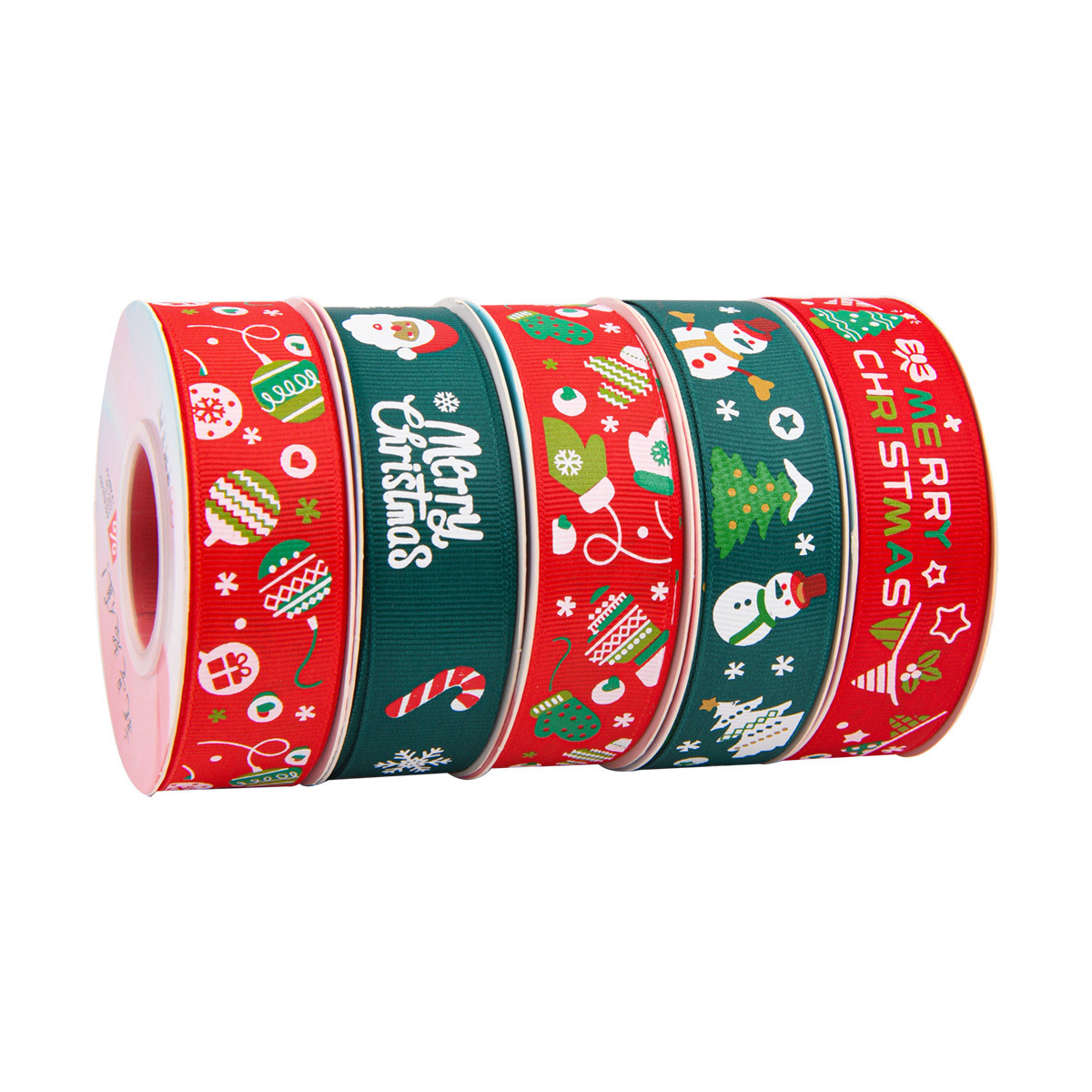20mm-25mm Ribbon Natal Polyester Cetak untuk Dekorasi Festival dan Pengemasan Kotak Hadiah![]()